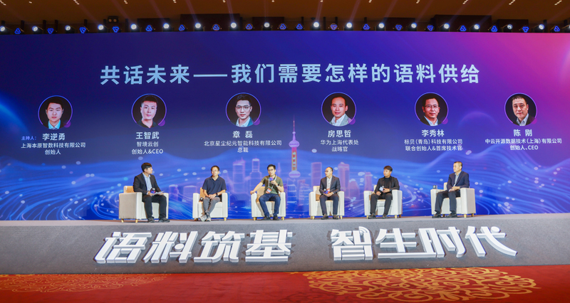 在圆桌环节中,来自上海本原智数的创始人李逆勇作为圆桌主持人,提出了大模型的出现对于语料供给带来了哪些新的机会和挑战、数据的自动化标注与人工标注现况趋势及合成数据的未来三个问题。华为上海代表处战略官房思哲,北京星尘纪元智能科技有限公司总裁章磊,标贝(青岛)科技有限公司联合创始人、首席技术官李秀林,智境云创创始人、CEO王智武,中云开源数据技术(上海)有限公司创始人、CEO陈刚进行了观点分享和思想碰撞。