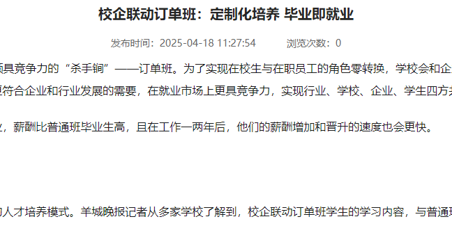 和普通本科院校相比,众多高职院校有一个颇具竞争力的杀手锏——订单班。为了实现在校生与在职员工的角色零转换,学校会和企业联动组
